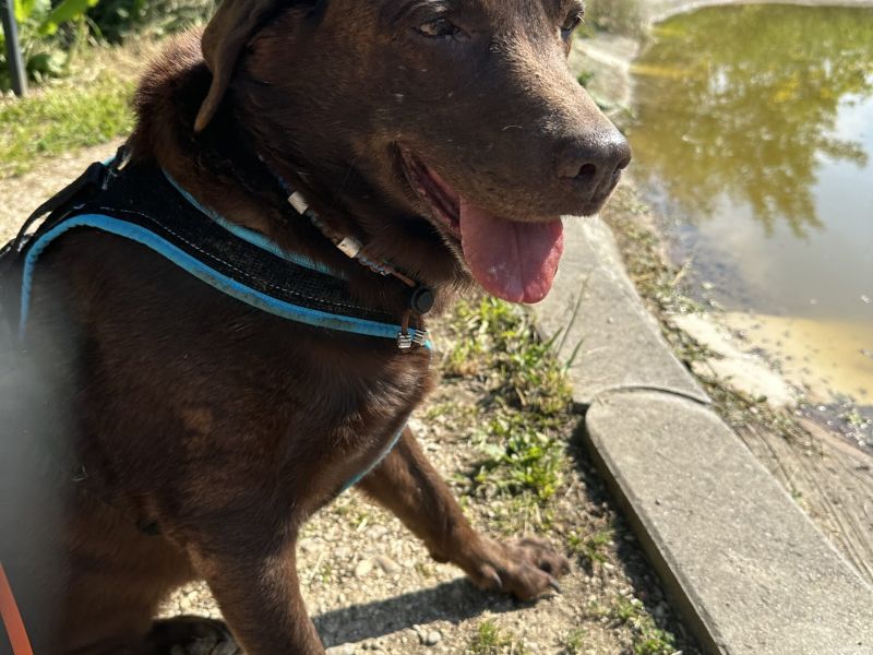 Hallo, ich bin Jenna – Labrador-Dame mit Charakter, Gourmetnase, Bauchkraulliebhaberin und Spezialistin für strategisches Schlendern.